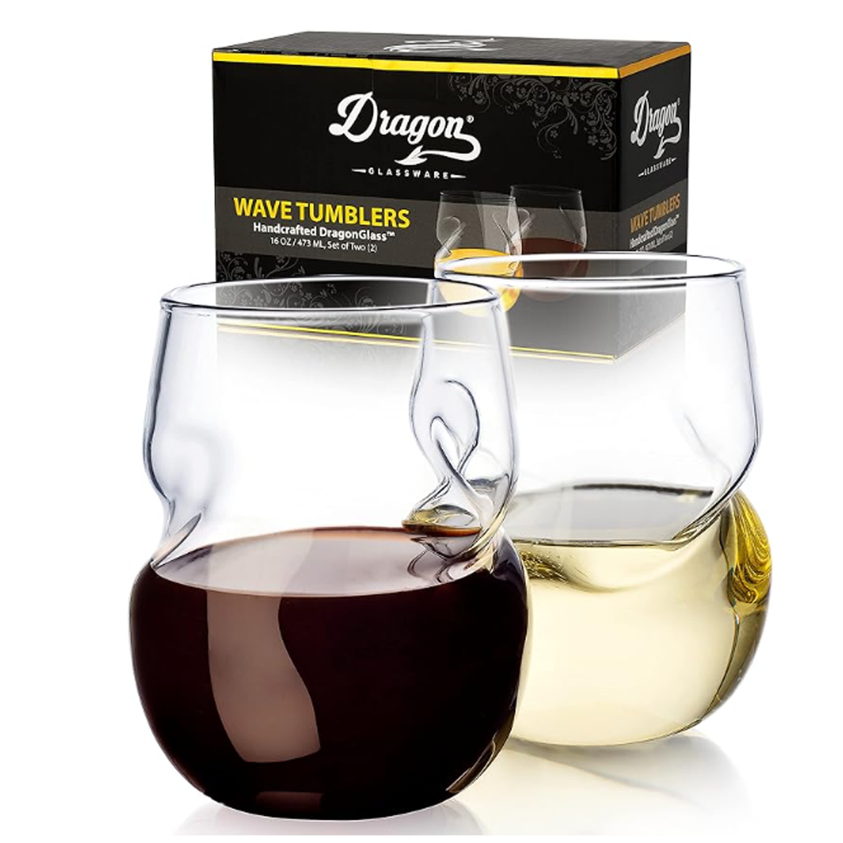 Improves and Aerates Wine: The unique shape naturally aerates wine and serves as a decanter, these crystal clear stemless wine glasses are suitable for all types of red and white wine or your favorite cocktail, spirit, martini, soft drink and more convenient curved indentations both act as aerators and allow your thumb and fingers to rest for ultimate comfort. .These stemless red wine glasses make a wonderful choice for wine lovers and oenophiles and come in luxury gift packaging