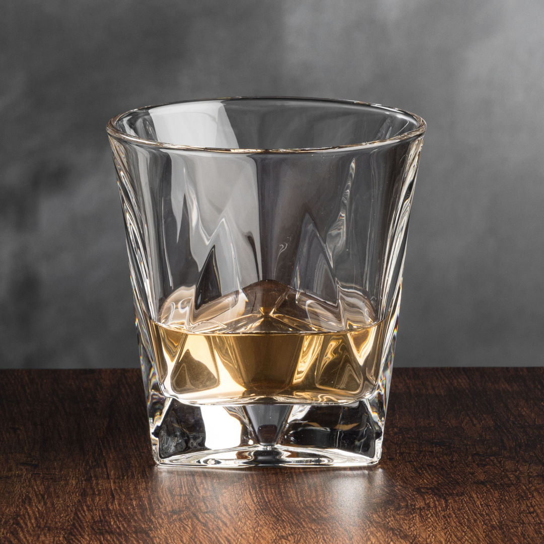 The Oakhaven Whiskey Taster glass boasts a geometric design, giving it a sleek, modern look that enhances the tasting experience. The central indent is the perfect spot for your logo, making this glass both stylish and customizable for any whiskey connoisseur.